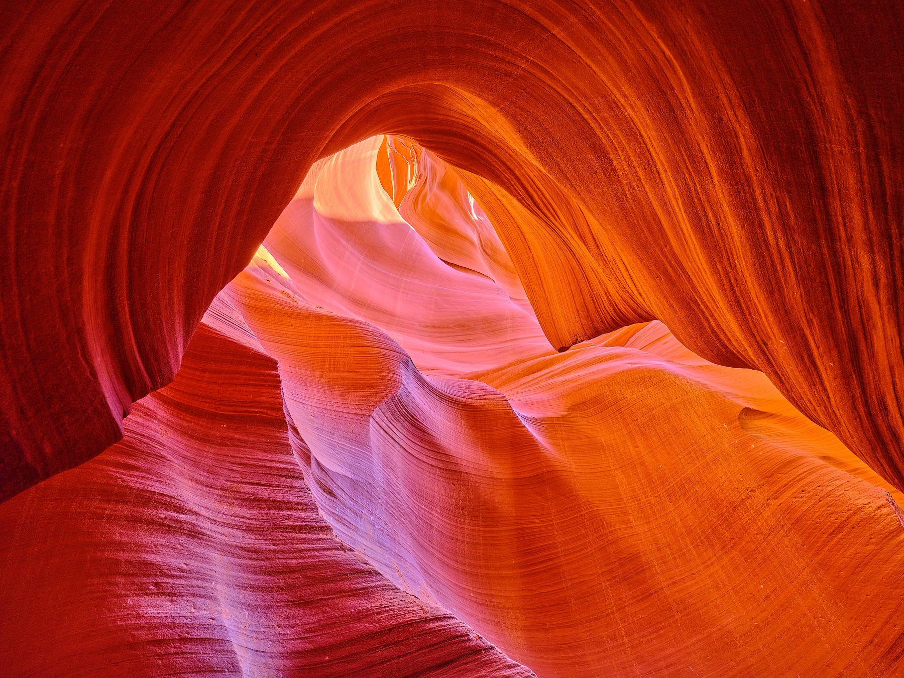 Dinding canyon yang halus dan bergelombang menjadi subjek fotografi yang menarik. Pola berlapis-lapis dari sedimentasi batuan pasir Navajo menghasilkan efek visual seperti lukisan abstrak alami.